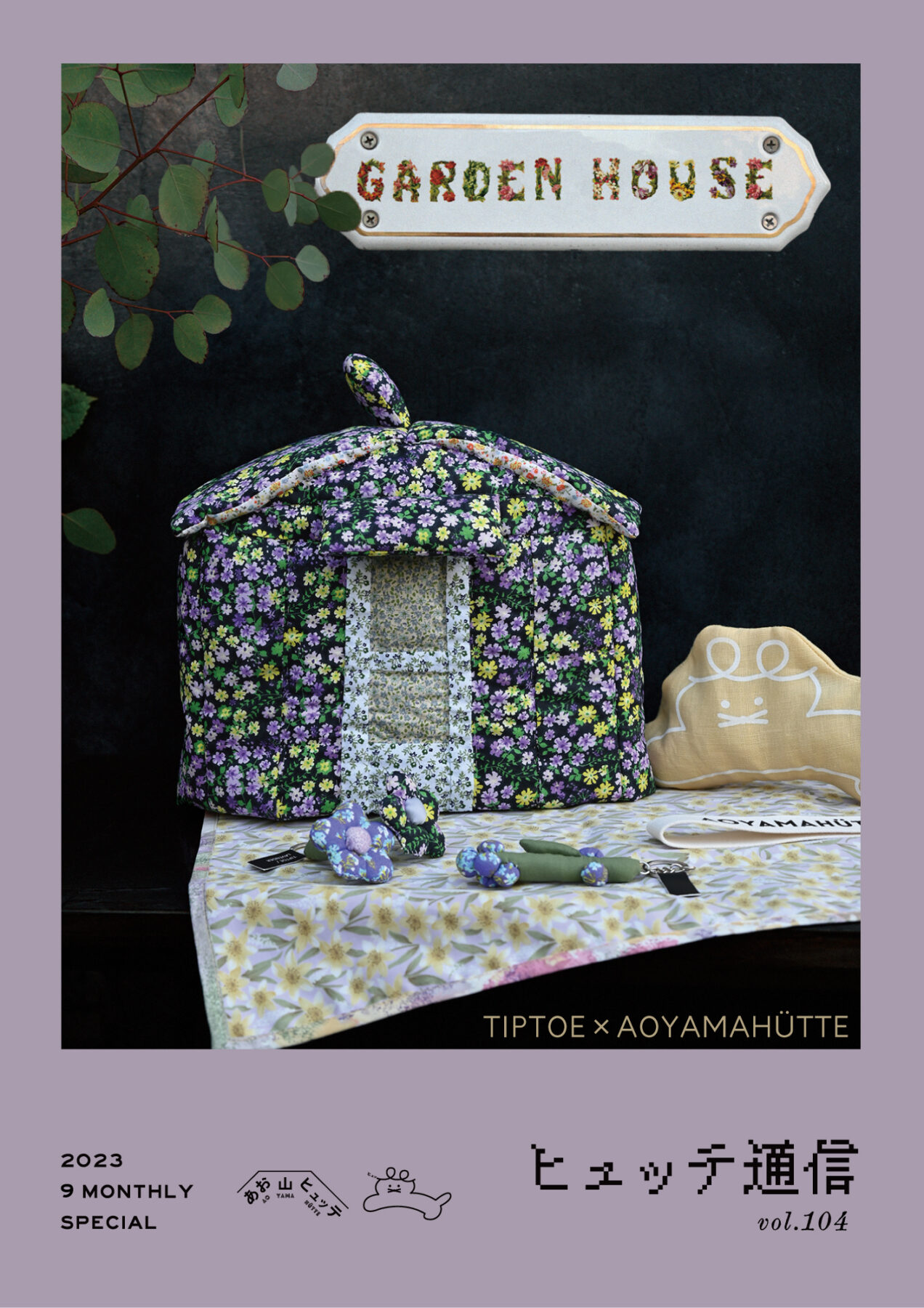 そんな風景をイメージしてTIPTOEとあお山ヒュッテがラベンダーやハーブをテーマにグッズを作りました。小屋の形のティーコージーやラベンダーのオーナメント、ポプリが入ったサシェやアイピロー、ラベンダーカラーのファブリックバッグなどが並びます。